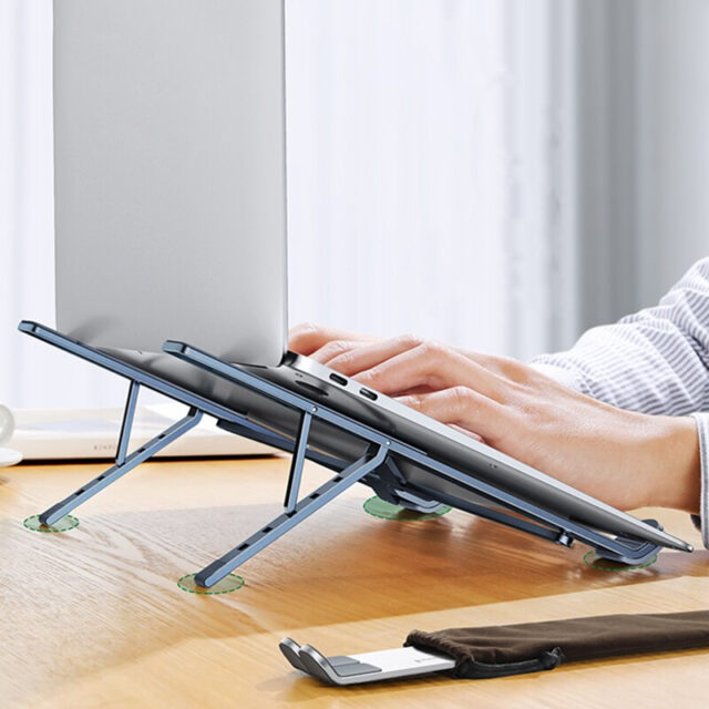 Whether you’re working from home, in the office, attending virtual meetings, or enjoying movies, our laptop stand is your go-to accessory for an improved ergonomic setup. Its foldable and portable nature makes it ideal for digital nomads, office workers, and students alike, ensuring a comfortable and productive environment everywhere.