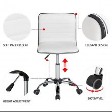Transform your workspace with our Adjustable Modern Faux Leather Swivel Office Chair, a beacon of comfort, style, and flexibility. Designed to cater to your every need, this high-quality armless chair offers unparalleled support and convenience for hours of uninterrupted productivity. Whether you’re updating your office, study, or adding a sleek touch to your dorm room, this chair is the epitome of modern elegance and ergonomic design.