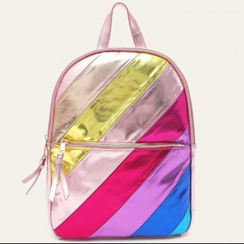 Colorful Striped Vegan Leather Backpack with Large Capacity