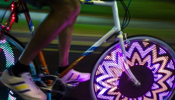 Now here's a simple little device to make riding at night fun. This light has multiple patterns that provide a colorfully visual experience for safety also. I live in New Orleans and you'd see a lot of bike tours in the Frech Quarter and they would have a lot of them decked out of LED lights it looked like a rolling party so now you can have that every time you ride out in the evening.
