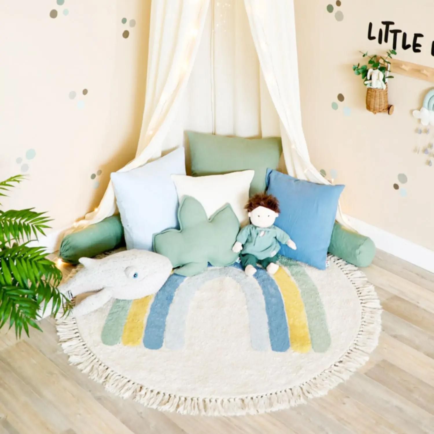 Introducing our Colorful Cartoon Rainbow Round Rug, a perfect blend of style, comfort, and practicality designed to brighten up any room in your home. Crafted with meticulous attention to detail, this fluffy, adorable rug is not just a piece of decor but a statement of creativity and joy. Ideal for children’s bedrooms, living rooms, or any space that needs a touch of whimsy, our rug promises to deliver both beauty and functionality.