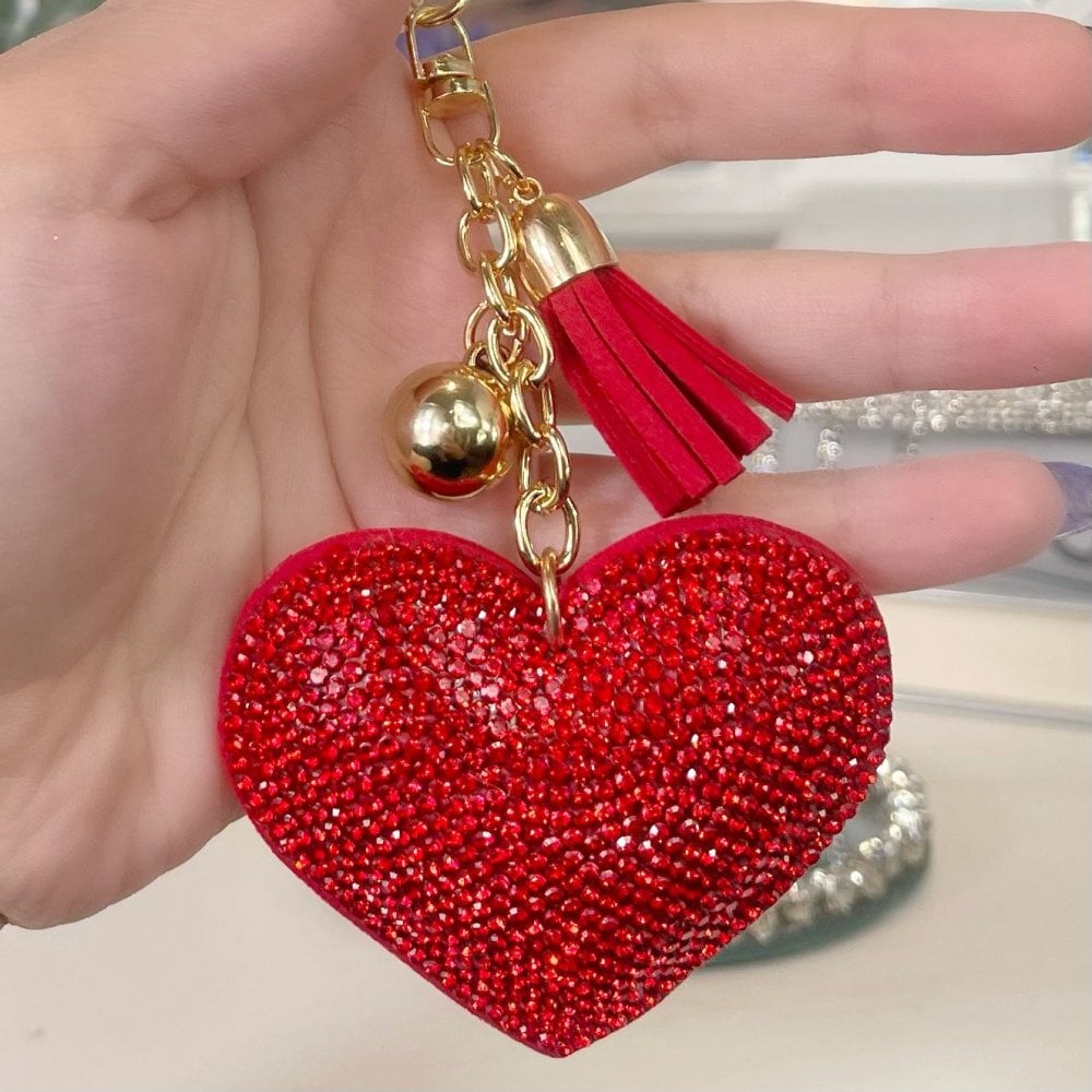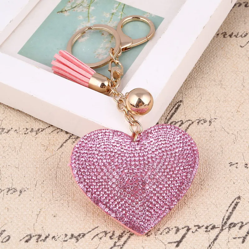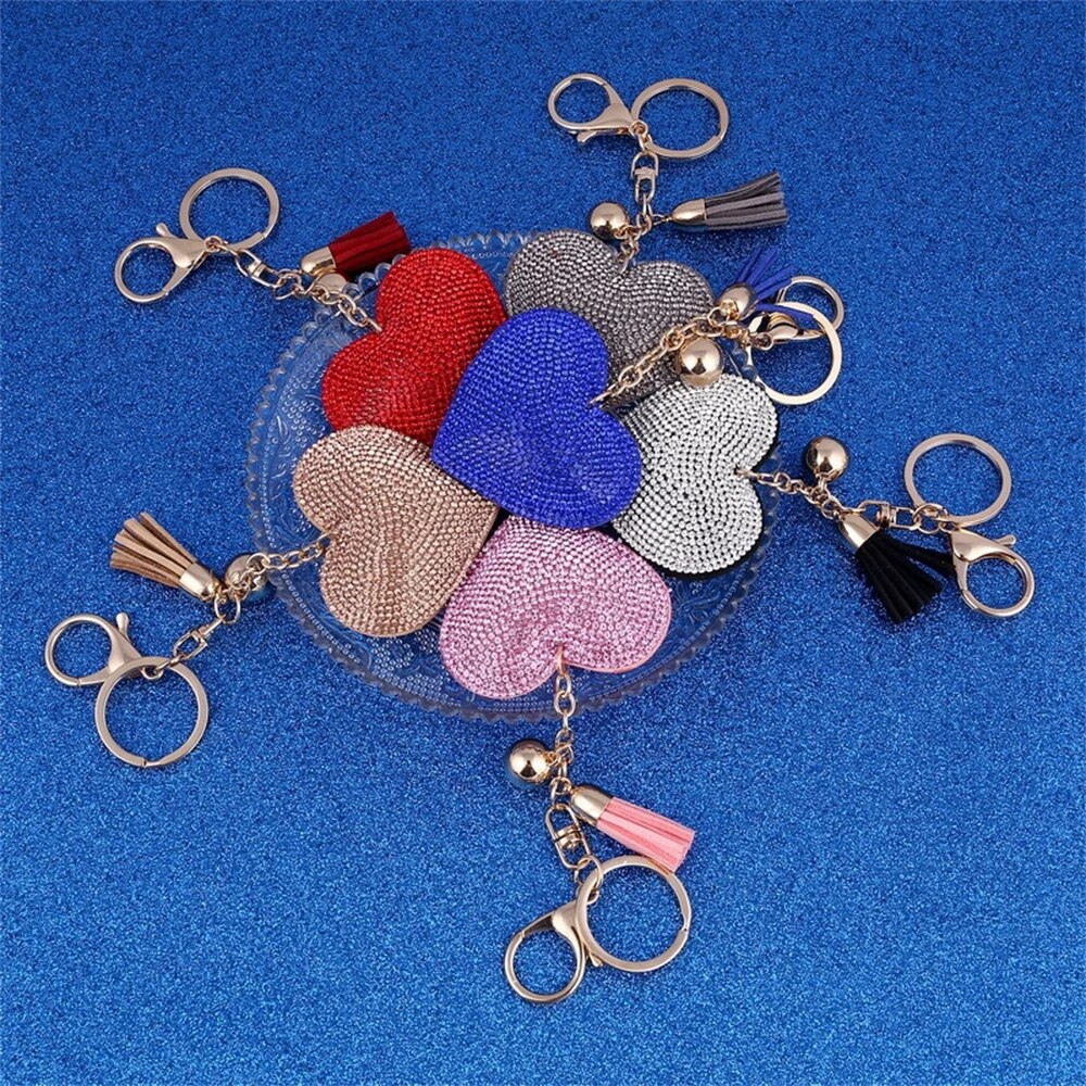 Colorful Heart Rhinestone Keychain with Tassel for Women