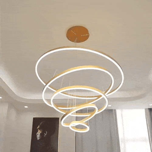 I recently installed this breathtaking lighting feature in my open-concept living room, and it has utterly transformed the space. The unique six-ring design creates a focal point that is both artistic and functional. The ability to adjust the brightness is fantastic, allowing me to set the mood for any occasion, from a bright, energizing morning to a cozy, intimate evening. The LED lights emit a warm, inviting glow that enhances the modern aesthetic of my home without overpowering it. The installation was surprisingly straightforward, and the energy efficiency of the LED technology is a major plus. It's not just a light fixture; it's become a centerpiece that elevates the entire room.