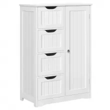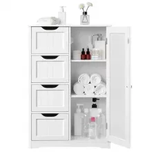 - Spacious Storage: Equipped with four drawers and a sizeable cupboard, it provides ample space to organize toiletries, cosmetics, towels, and other essentials.
