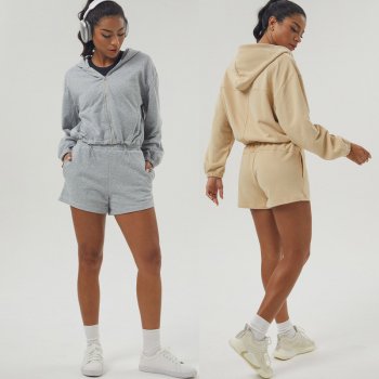 Women’s 2-Piece Workout Set with Hoodie & Shorts – Breathable Yoga Outfit