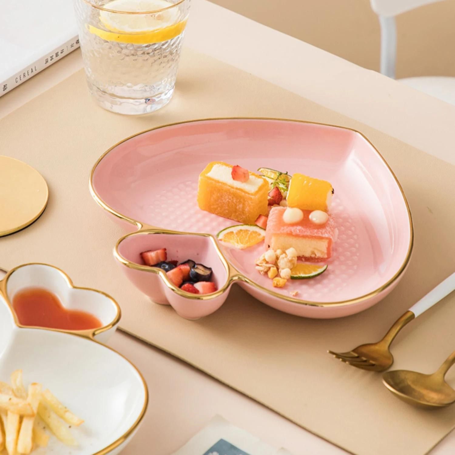 Modern Ceramic Love Plate Creative Western Food Salad Plate Dipping Dish Creative Heart Shaped Fruit Dessert Cake Dish Tableware