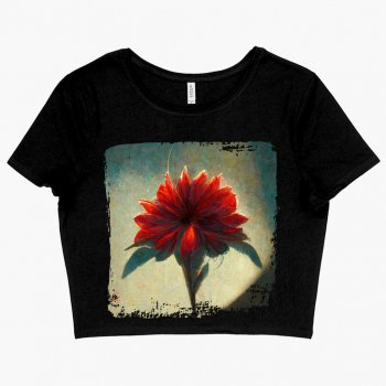 Red Dahlia Flower Women’s Cropped T-Shirt – Art Crop Top – Graphic Crop Tee Shirt
