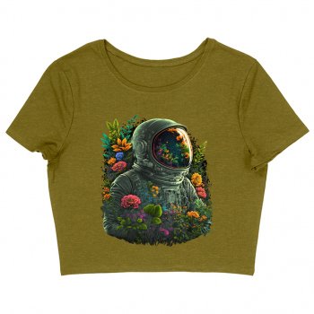 Astronaut Design Women’s Cropped T-Shirt – Flower Crop Top – Cute Design Cropped Tee