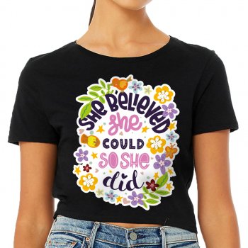 She Believed She Could So She Did Women’s Cropped T-Shirt – Inspirational Crop Top – Printed Cropped Tee