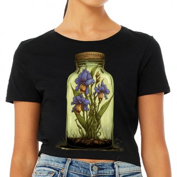 Themed Women’s Cropped T-Shirt – Flower Bottle Crop Top – Printed Cropped Tee