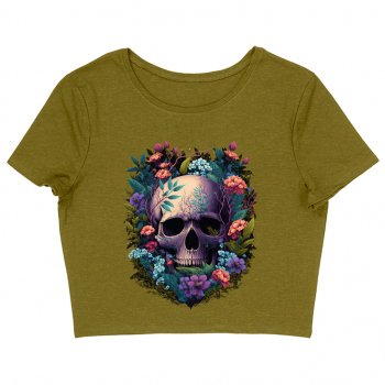 Floral Skull Women’s Cropped T-Shirt – Gothic Crop Top – Cool Cropped Tee