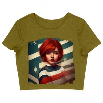 Girl With Red Hair American Flag Women’s Cropped T-Shirt – Print Crop Top – Flag Crop Tee Shirt