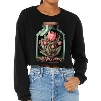 Tulip Cropped Long Sleeve T-Shirt – Flowers Women’s T-Shirt – Graphic Long Sleeve Tee