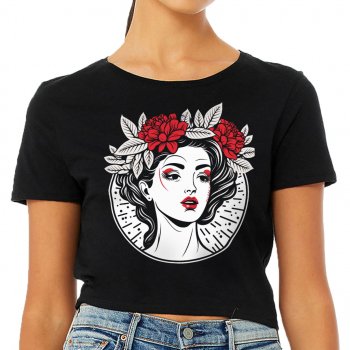 Floral Design Women’s Cropped T-Shirt – Cool Graphic Crop Top – Illustration Cropped Tee