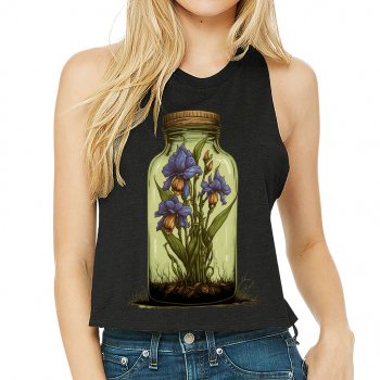 Themed Racerback Cropped Tank – Flower Bottle Women’s Tank – Printed Tank Top