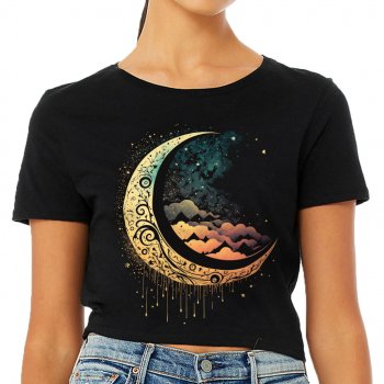 Moon Graphic Women’s Cropped T-Shirt – Cool Art Crop Top – Printed Cropped Tee