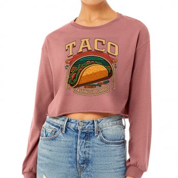 Taco Print Cropped Long Sleeve T-Shirt – Food Women’s T-Shirt – Cool Graphic Long Sleeve Tee