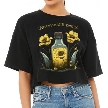 Yellow Flowers Women’s Crop Tee Shirt – Grow and Blossom Cropped T-Shirt – Art Crop Top
