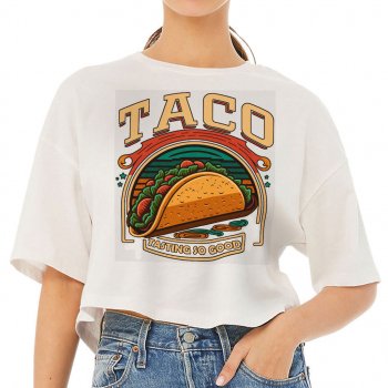 Taco Print Women’s Crop Tee Shirt – Food Cropped T-Shirt – Cool Graphic Crop Top
