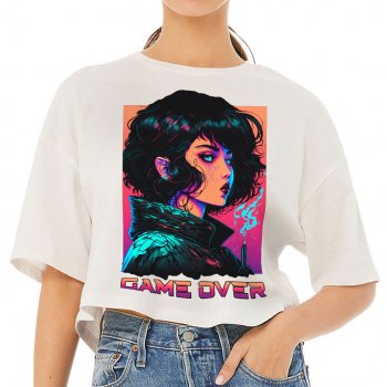 Game Over Women’s Crop Tee Shirt – Cool Art Cropped T-Shirt – Illustration Crop Top