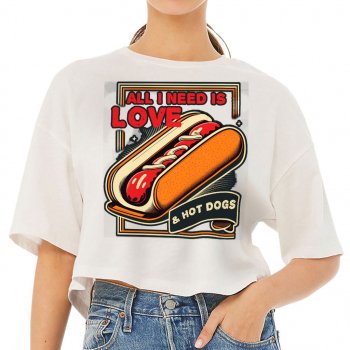 I Love Hot Dogs Women’s Crop Tee Shirt – Food Graphic Cropped T-Shirt – Best Design Crop Top