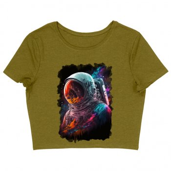 Space Astronaut Women’s Cropped T-Shirt – Cool Art Crop Top – Colorful Cropped Tee