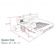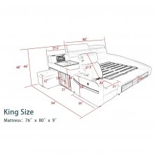 Upon acquiring this king-size bed, I was immediately impressed by its stately presence and impeccable design. The bed's construction, a solid blend of pine and fiberwood, provided a firm foundation that spoke of its durability and attention to quality. This robust framework was complemented by the genuine leather upholstery, which not only added a touch of luxury and refinement but also promised a tactile experience that was both inviting and indulgent. The leather's texture and warmth contributed to a sense of opulence and comfort that was both seen and felt, creating a bedroom centerpiece that was as aesthetically pleasing as it was functional. Exploring the bed’s functionality, I was particularly captivated by its practical storage features. The thoughtfully designed storage compartments seamlessly integrated into the bed’s structure, offering a convenient solution for organizing and stowing away belongings. This design ingenuity not only maximized the utility of the bed but also enhanced the overall aesthetic of my bedroom by minimizing clutter. The ease with which I could access and utilize this storage space made it clear that this bed was designed with the user’s convenience and lifestyle in mind, merging practicality with elegance in a way that elevated the entire bedroom experience. The pinnacle of the bed's luxurious features, however, was its relaxing massage functionality. This innovative addition transformed the bed from a mere sleeping platform into a personal retreat, where relaxation and rejuvenation were just a button press away. The massage feature, with its adjustable settings, offered a personalized relaxation experience that helped alleviate the stresses of daily life, making every night a therapeutic session. The ability to enjoy such luxury in the privacy and comfort of my own home was truly transformative. It redefined my perception of bedroom comfort, integrating rest, relaxation, and luxury into a single, cohesive experience. This bed, with its combination of sturdy construction, luxurious detailing, smart storage, and therapeutic massage, was more than just a piece of furniture; it was a sanctuary that offered a respite from the outside world, embodying the essence of comfort and luxury in every aspect