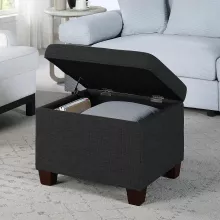 Madison Multi-Functional Storage Ottoman, Dark Charcoal Gray Fabric