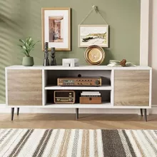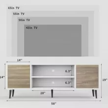 Introducing our sleek and stylish Mid-Century Modern TV Stand, perfect for 55/65-inch TVs. This elegantly designed entertainment center is a blend of functionality and aesthetics, ideal for modern living rooms and bedrooms. The robust construction ensures your TV is securely displayed, while the additional storage and open shelving provide ample space for all your media needs.
