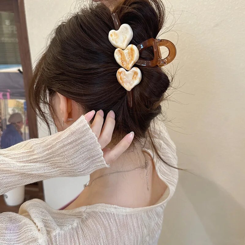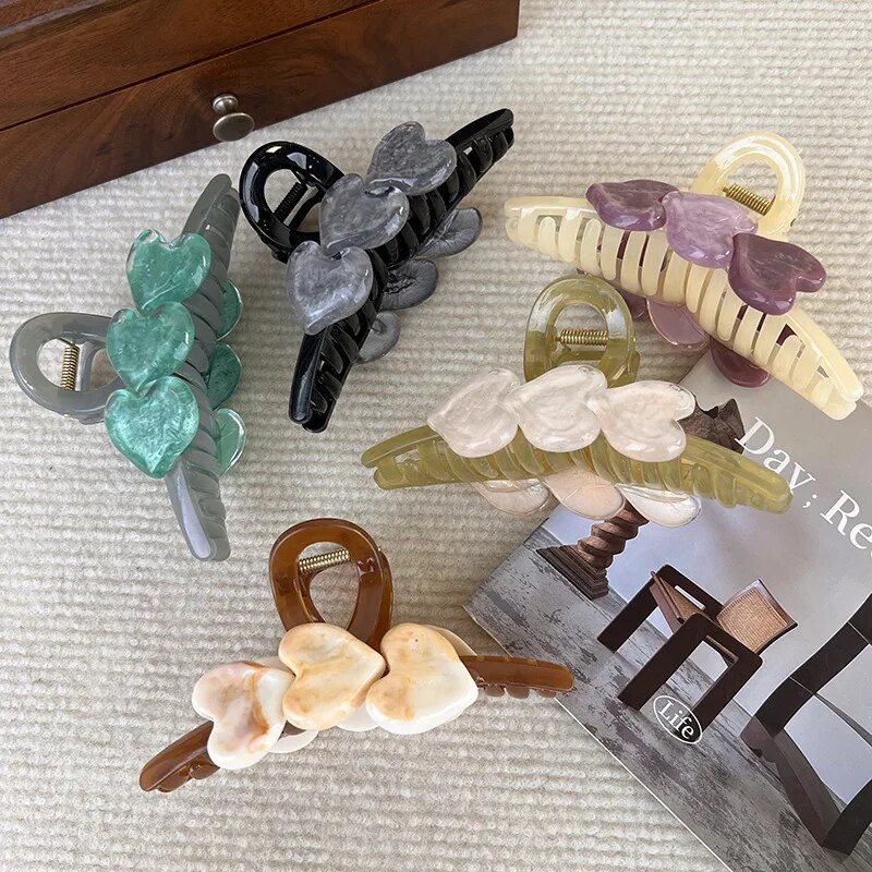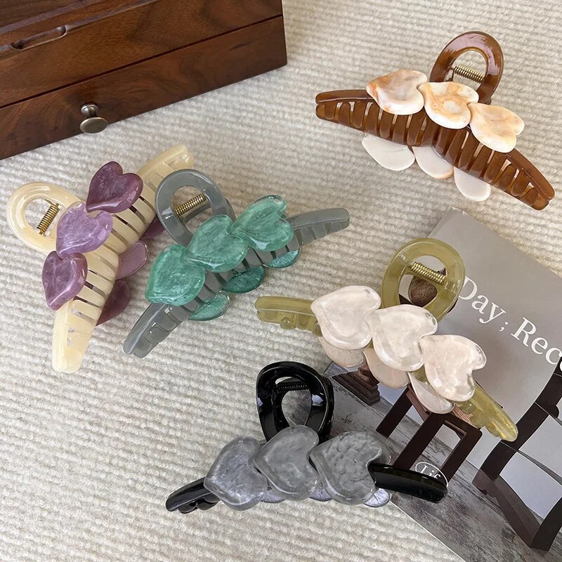 Featuring a captivating love heart design adorned with sparkling ice crystals, this large hair claw exudes charm and sophistication. Its candy colors add a playful yet chic element to any hairstyle, while the sturdy construction ensures long-lasting durability.