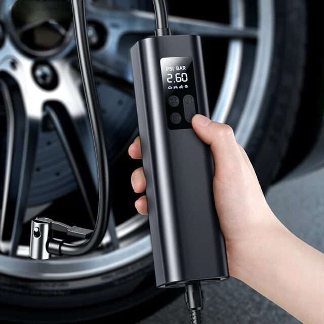 Introducing the ultimate solution to your emergency inflation needs – a sleek, portable air compressor designed for quick and efficient inflating on the go. With its compact design, this air pump is a must-have accessory for any vehicle, ensuring you’re prepared for any situation, whether it’s inflating car tires, motorcycle tires, bicycles, or even sports equipment. Its small size allows for easy storage in a backpack, glove box, or under a seat, making it the perfect travel companion.