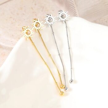 Stainless Steel Earrings: Classic Sun Totem Long Snake Beads Chain Stud Earrings