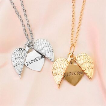 Trendy Heart Angel Wings Pendant Necklace – Romantic “I Love You” Jewelry