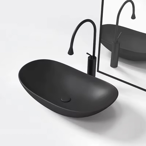 Our ceramic wash basin not only serves its practical purpose but also adds a statement piece to your bathroom decor. The sleek black basin with a modern oval shape exudes elegance and style, making it a focal point of your space.