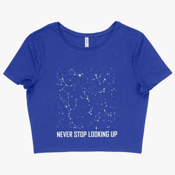 Women’s Cropped Never Stop Looking Up T-Shirt – Constellation T-Shirt – Stars T-Shirt