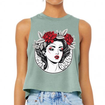 Floral Design Racerback Cropped Tank – Cool Graphic Women’s Tank – Illustration Tank Top