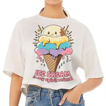 Funny Ice Cream Women’s Crop Tee Shirt – Cute Cropped T-Shirt – Graphic Crop Top