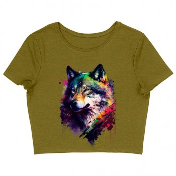 Colorful Wolf Women’s Cropped T-Shirt – Cool Art Crop Top – Printed Cropped Tee