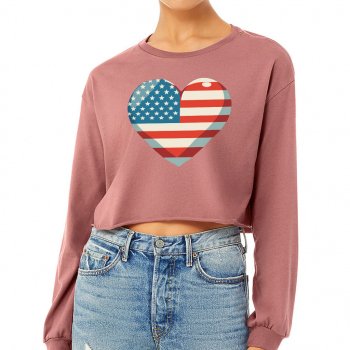 Flag Heart Cropped Long Sleeve T-Shirt – USA Flag Women’s T-Shirt – Patriotic Long Sleeve Tee
