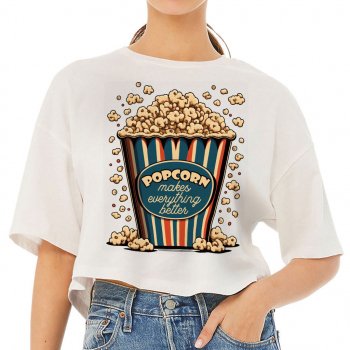 Popcorn Women’s Crop Tee Shirt – Funny Design Cropped T-Shirt – Printed Crop Top