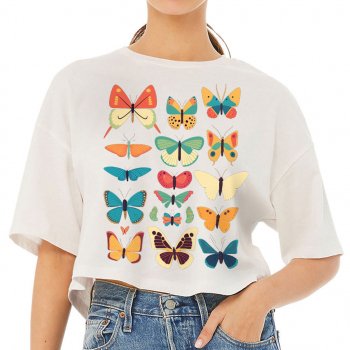Butterfly Print Women’s Crop Tee Shirt – Cute Graphic Cropped T-Shirt – Best Print Crop Top