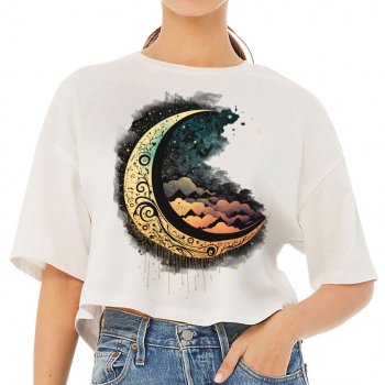 Moon Graphic Women’s Crop Tee Shirt – Cool Art Cropped T-Shirt – Printed Crop Top