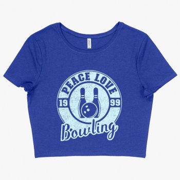 Women’s Cropped Peace Love Bowling T-Shirt – Bowling T-Shirt Design – Bowling Themed T-Shirts