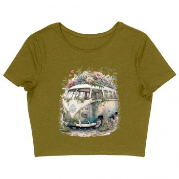 Bus Women’s Cropped T-Shirt – Floral Design Crop Top – Graphic Cropped Tee