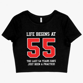 Women’s Cropped Life Begins at 55 T-Shirt – 55th Birthday T-Shirts – 55 Year Old Birthday T-Shirt