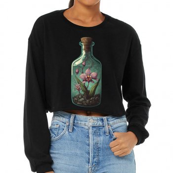 Themed Cropped Long Sleeve T-Shirt – Flower Bottle Women’s T-Shirt – Printed Long Sleeve Tee