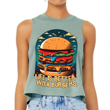 Burger Print Racerback Cropped Tank – Quote Women’s Tank – Illustration Tank Top