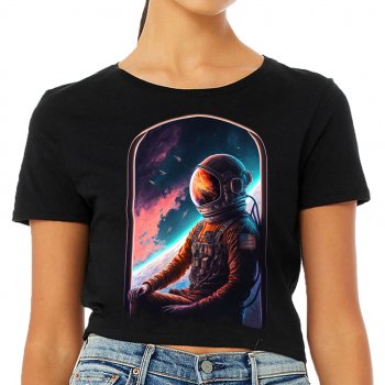 Space Astronaut Women’s Cropped T-Shirt – Galaxy Crop Top – Cool Cropped Tee