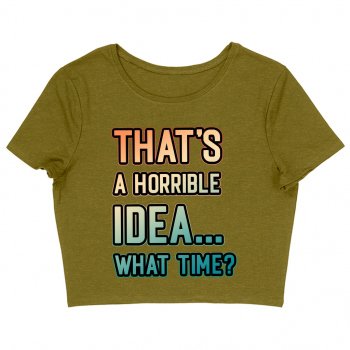 That’s a Horrible Idea What Time Women’s Cropped T-Shirt – Printed Crop Top – Funny Quote Cropped Tee