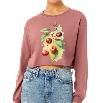 Cherry Print Cropped Long Sleeve T-Shirt – Cute Women’s T-Shirt – Themed Long Sleeve Tee
